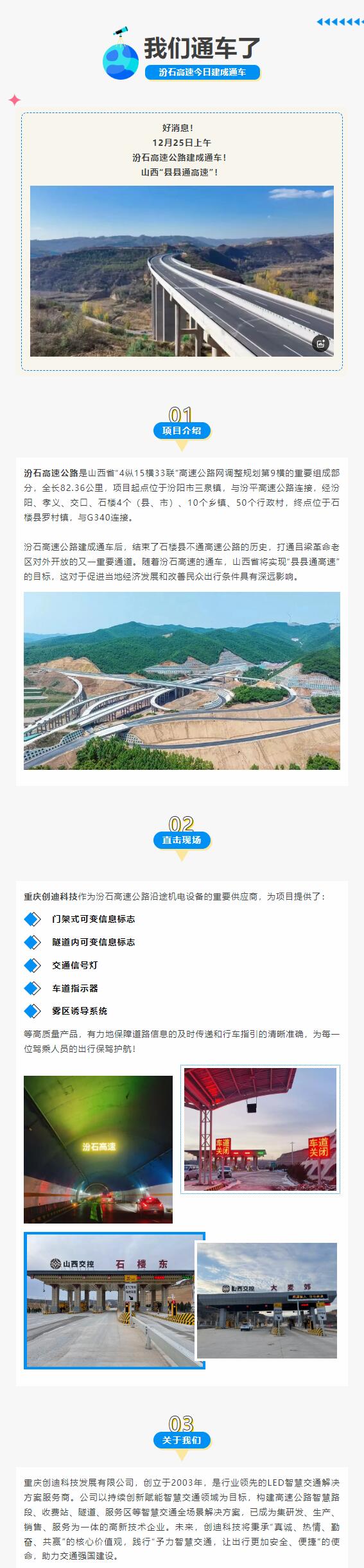 重慶創(chuàng)迪科技丨助力汾石高速公路建成通車