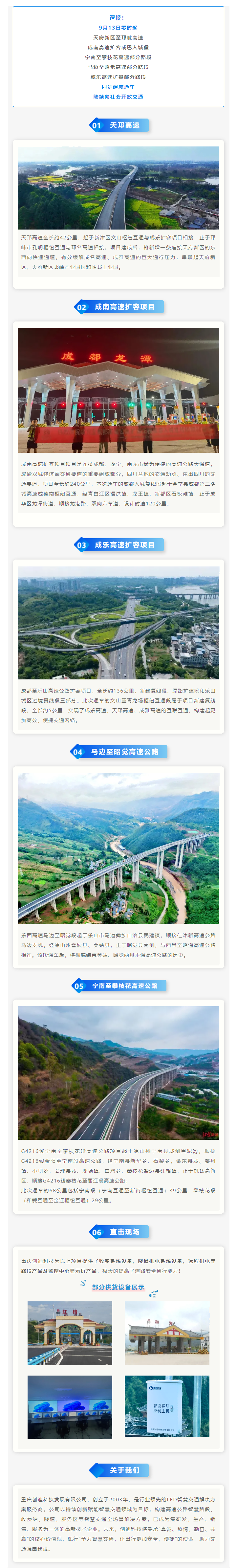 重慶創(chuàng)迪助力丨四川多條高速(路段)建成通車!